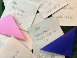 新春は京都二条の松栄堂さんのお香「白川」でお客様をお迎えいたします。白檀の甘い香りで都の春に思いを馳せてみてはいかがでしょうか。香りを通して慌ただしい日常から抜け出していただけると嬉しいです。恒例新春の三角くじは2月8日まで開催しております。